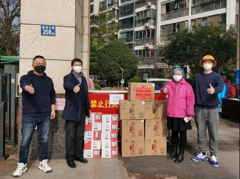 3月5日,黃鶴樓酒業(yè)總經(jīng)理助理、銷售公司常務(wù)副總經(jīng)理王超一行到三里民居小區(qū)、人信匯小區(qū)及海天歡樂購等小區(qū)開展防疫慰問,并送去近5萬元防疫物資。
