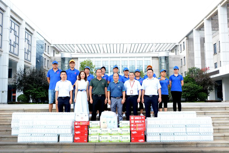黃漢強一行給黃鶴樓酒業員工送來了礦泉水、金銀花露、醫藥箱及毛巾等物資,并對員工的工作和生活情況表示關心與關愛。