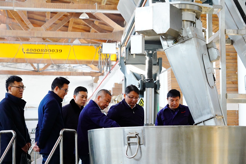 彭曉濤一行調(diào)研了天成坊釀造車(chē)間、名人酒窖、酒文化博物館等地,詳細(xì)了解了黃鶴樓酒業(yè)工業(yè)自動(dòng)化情況。魏國(guó)介紹到,黃鶴樓酒業(yè)目前已投入使用自動(dòng)潤(rùn)糧、自動(dòng)上甑、自動(dòng)輸酒等自動(dòng)釀造系統(tǒng),大幅擴(kuò)大了黃鶴樓酒產(chǎn)能,提高了酒體穩(wěn)定性,有效推動(dòng)黃鶴樓酒業(yè)快速發(fā)展。