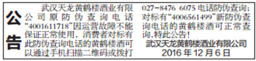 關于公司防偽查詢電話的公告