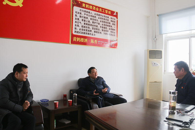 2月9日,隨州市經(jīng)濟和信息化局黨組成員、總經(jīng)濟師王洪剛到黃鶴酒業(yè)(隨州)有限公司調(diào)研企業(yè)開工和項目建設(shè)情況,隨州高新區(qū)經(jīng)濟發(fā)展局局長魏建業(yè)陪同調(diào)研,黃鶴樓酒業(yè)黨委委員、隨州分廠廠長閔波平接待來訪。