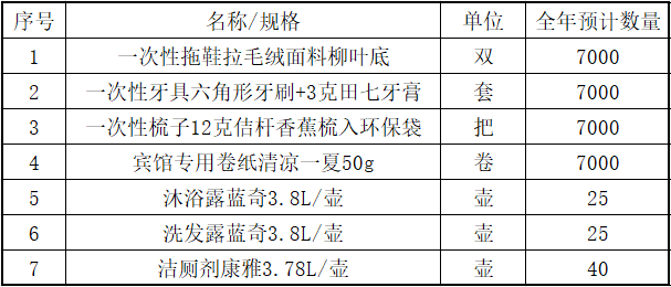 1、項目名稱: 2024年咸寧廠區(qū)古樓客棧客房低值易耗品定點采購項目
