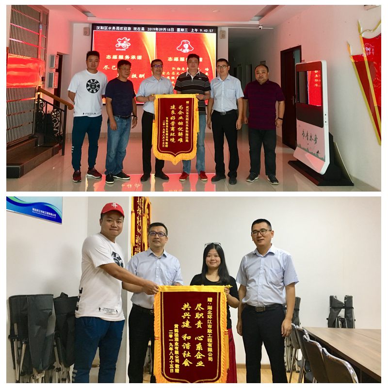 隨后,黃曉文一行前往湖北環(huán)江市政工程有限公司贈(zèng)與錦旗,以表對(duì)黃鶴樓酒業(yè)武漢廠區(qū)雨污分流工程建設(shè)的感謝之情。